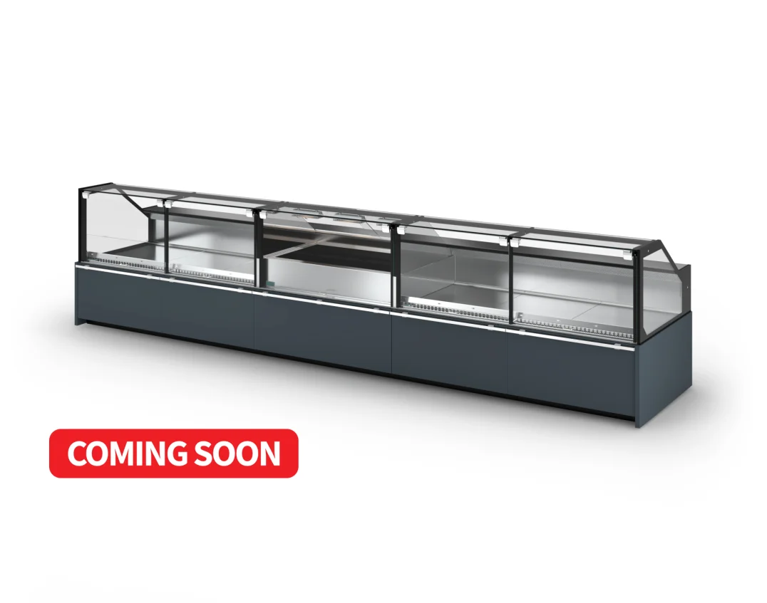 Traditionelle Bedienungstheke mit Heißmodulen (Wasserbad oder Heizplatten), geeignet für die Präsentation und den Verkauf von verzehrfertigen Feinkost- und Gastronomieprodukten. Die neue Grecale-Modellreiche stellt die jüngste Weiterentwicklung der DRR-Theken dar und bietet maximale Flexibilität sowie ein ausgewogenes Verhältnis zwischen Qualität und Preis. Modularität, klare und reduzierte Formensprache sowie ein leichtes, elegantes Design heben die Produkte hervor und optimieren deren Sichtbarkeit, wobei die Frische der Lebensmittel im Mittelpunkt steht. Grecale ist sowohl in Remote- als auch in Plug-in-Ausführung erhältlich und bietet vollständige sowie vielseitige Lösungen für jede Präsentations- und Betriebsanforderung. Grecale ist in folgenden Ausführungen verfügbar: Bedienung, Selbstbedienung und Heißmodule.