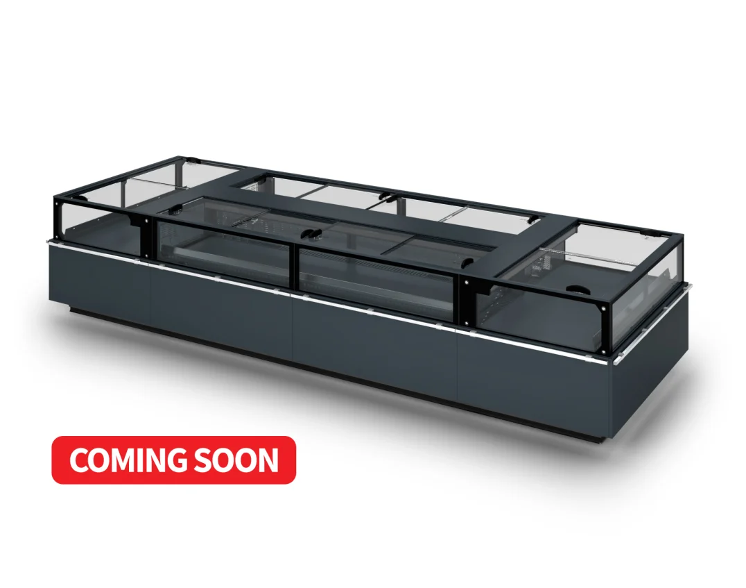 Low-back semi-vertical refrigerated island, operating at positive temperature, suitable for the display and self-service sale of pre-packaged products such as meat, cured meats, dairy products, fruit & vegetables. Meltemi represents the latest DRR evolution of medium-temperature islands, featuring a clean, essential design that ensures optimal visibility of the displayed products. Its compact and modern structure is designed to enhance every item, optimizing space while making the display more attractive and functional. Thanks to its wide range of configuration options, Meltemi adapts perfectly to different store layout and style requirements, offering versatile solutions for any type of retail environment. The Meltemi range also helps reducing energy consumption, while lowering installation and operating costs, thanks in part to the use of a single evaporator and a single controller. Meltemi is the ideal choice for those seeking a perfect balance between performance and cost efficiency. Meltemi is available in the following versions: MELTEMI DOORS and MELTEMI DOORS LB.