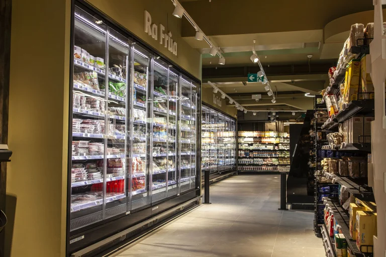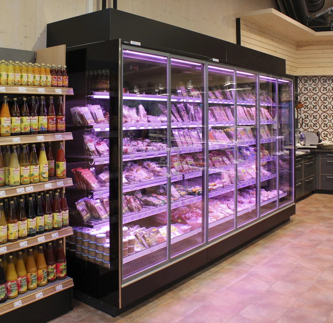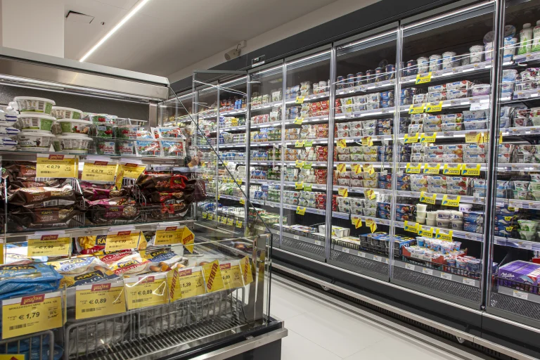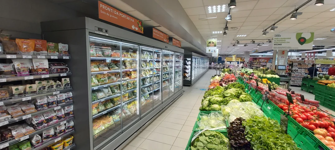 Multi-shelf vertical cabinet, with or without doors, suitable for displaying delicatessen, dairy products (class 3M2), pre packed meat (class 3M1) and fruit/vegetables (class 3H). Thanks to the technology developed in collaboration with the University of Padua, Angel offers the revolutionary ECOSYSTEM concept that ensures great results in terms of energy savings.
