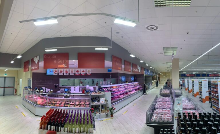 Innovación, ésta es la consigna de este supermercado de Siracusa donde CONAD volvió a elegir De Rigo Refrigeration para la refrigeración. Un proyecto que combina la elegancia del diseño esencial del mobiliario de la gama 2.0 con la eficiencia energética y la atención al medio ambiente de la planta de CO2 transcrítico – gascooler con ventiladores EC, sistema adiabático, dadas las cálidas temperaturas de la ciudad siciliana, e intercooler. El Service de De Rigo Refrigeration también gestiona 365/24h la monitorización remota y las alarmas de la instalación